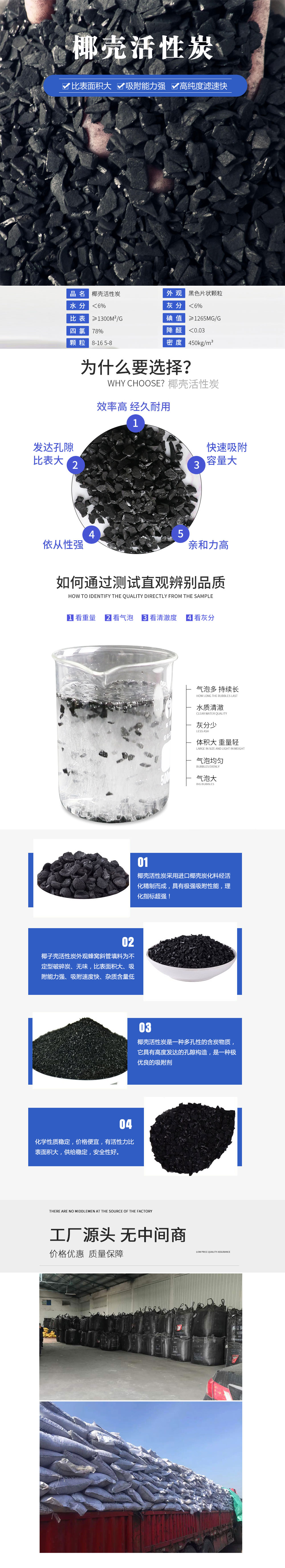 椰殼活性炭是利用椰子殼、桃殼、杏殼和煤為原料,經(jīng)斯列普工藝對(duì)原料進(jìn)行破碎、篩分,經(jīng)碳化、活化、烘干、篩選等系列工序加工而成,是一種非常優(yōu)良的吸附劑。它具有非常發(fā)達(dá)的孔隙結(jié)構(gòu),孔徑分布范圍較廣,吸附速度快、吸附容量高、抗磨擦、耐沖洗、使用周期長(zhǎng),具有物理吸附和化學(xué)分解的雙重特性可以有選擇的吸附液相、氣